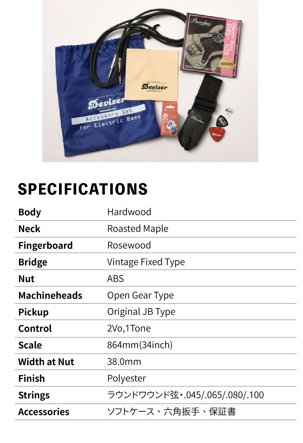 隨琴附贈原廠全配配件包 (調音器、導線、BASS弦*1、擦琴布、背帶、Pick、捲弦器)