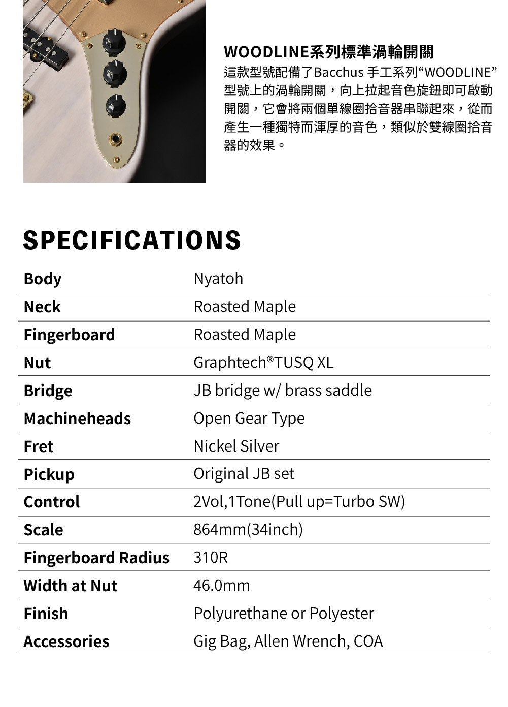 Bacchus WL4-STD/RSM SSW GD 貝斯