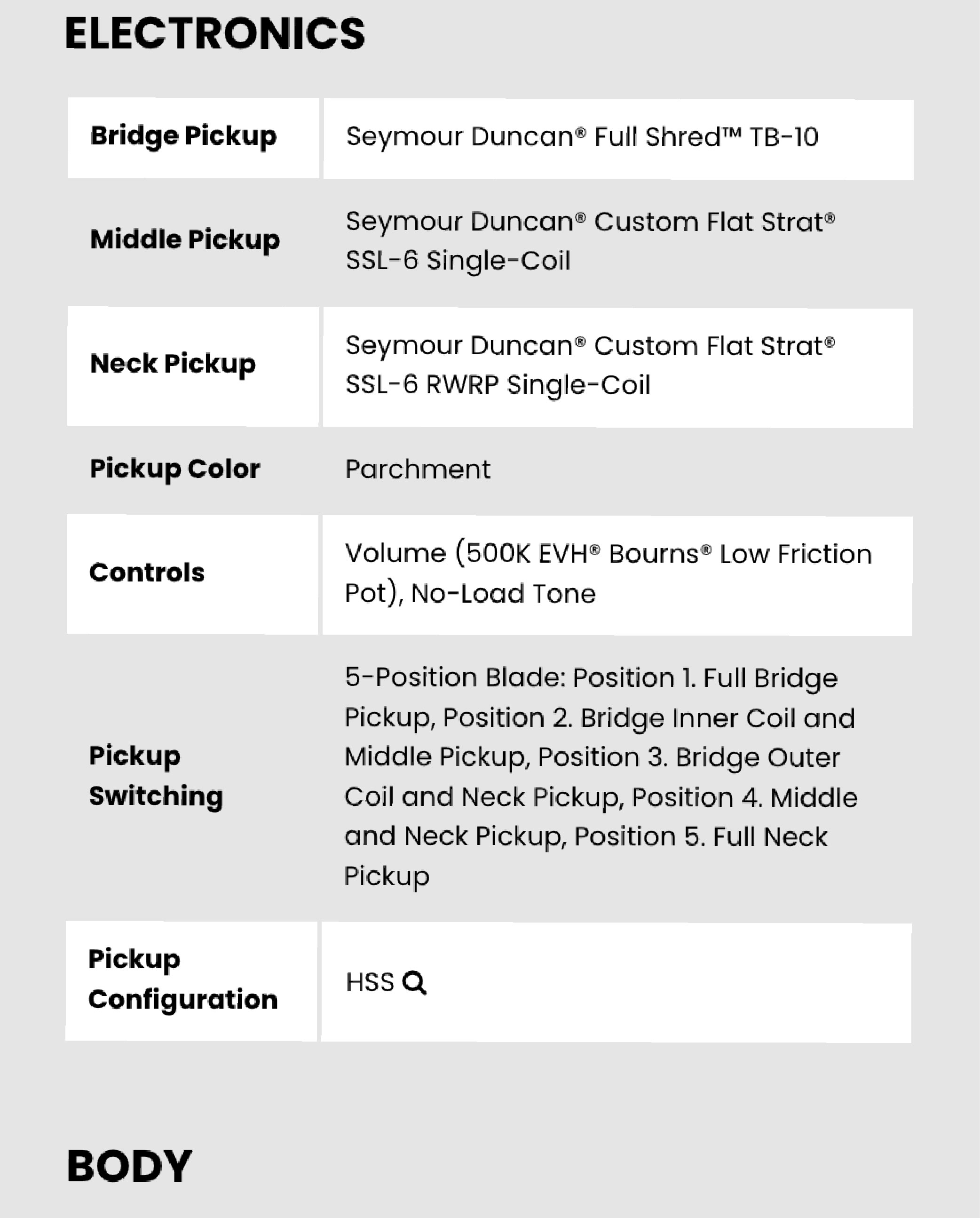 • Middle:Seymour Duncan Custom Flat Strat® SSL-6(單線圈)
