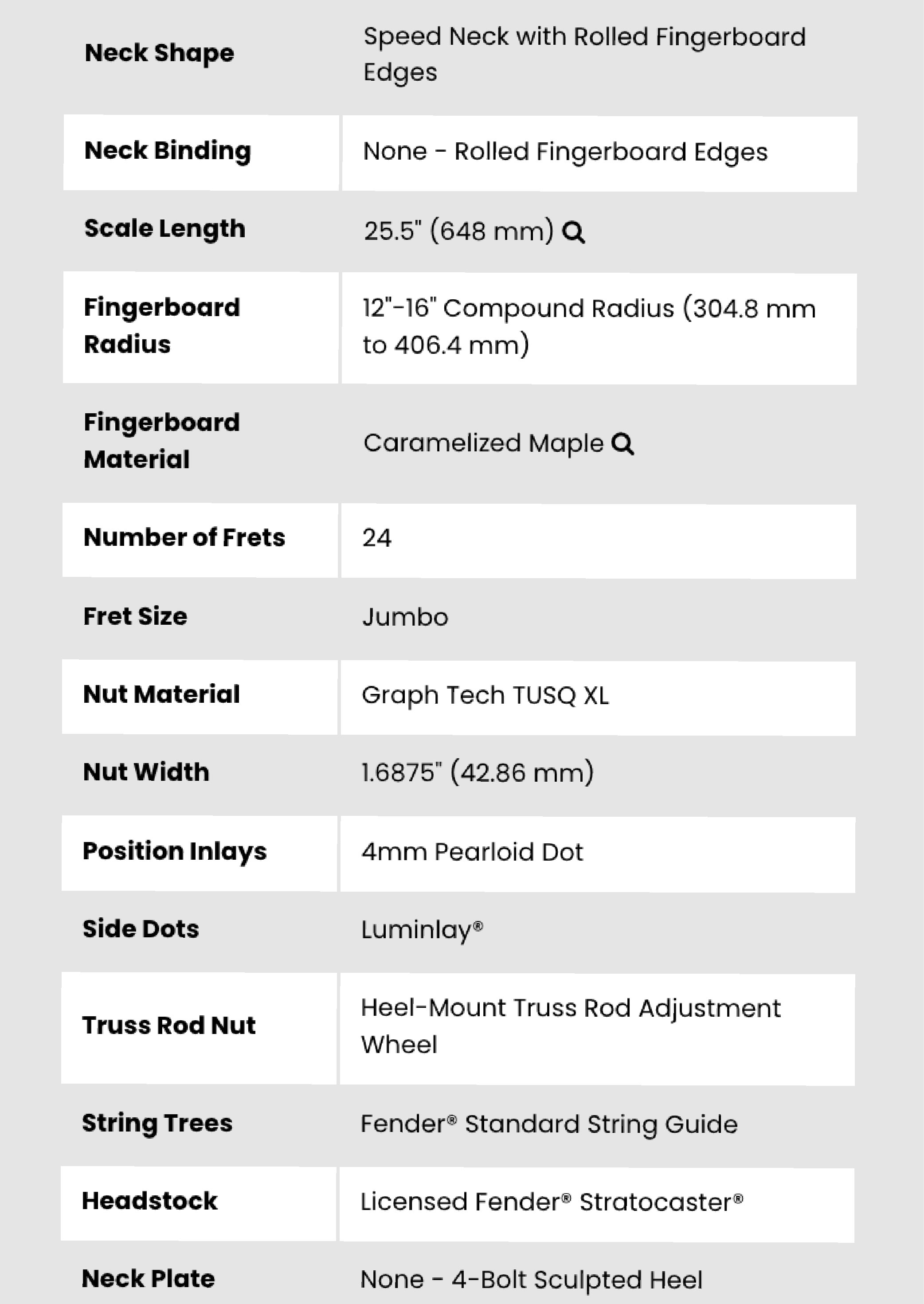 指板同樣是焦糖化楓木,採 12"-16" 複合弧度設計,從刷和弦到高速 solo 都好上手,