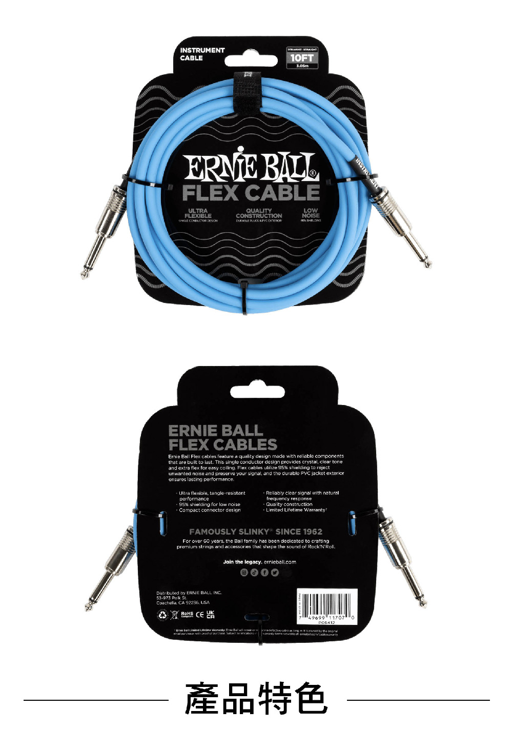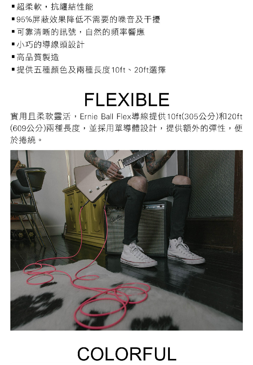Ernie Ball Cable Flex SS 10ft 樂器導線 多色款