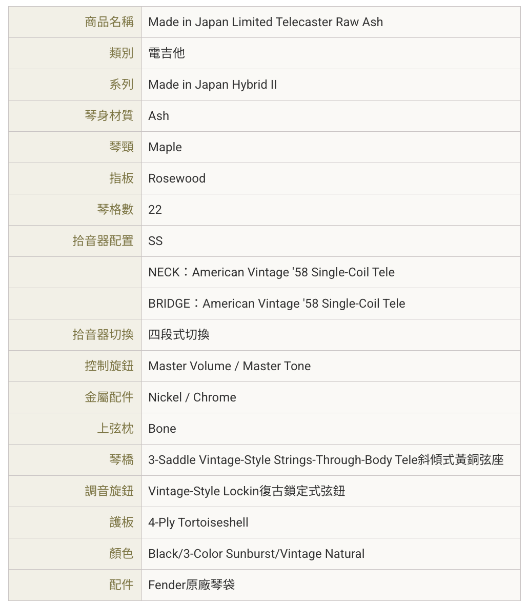 Fender Made in Japan Limited Telecaster Raw Ash 電吉他 多色款