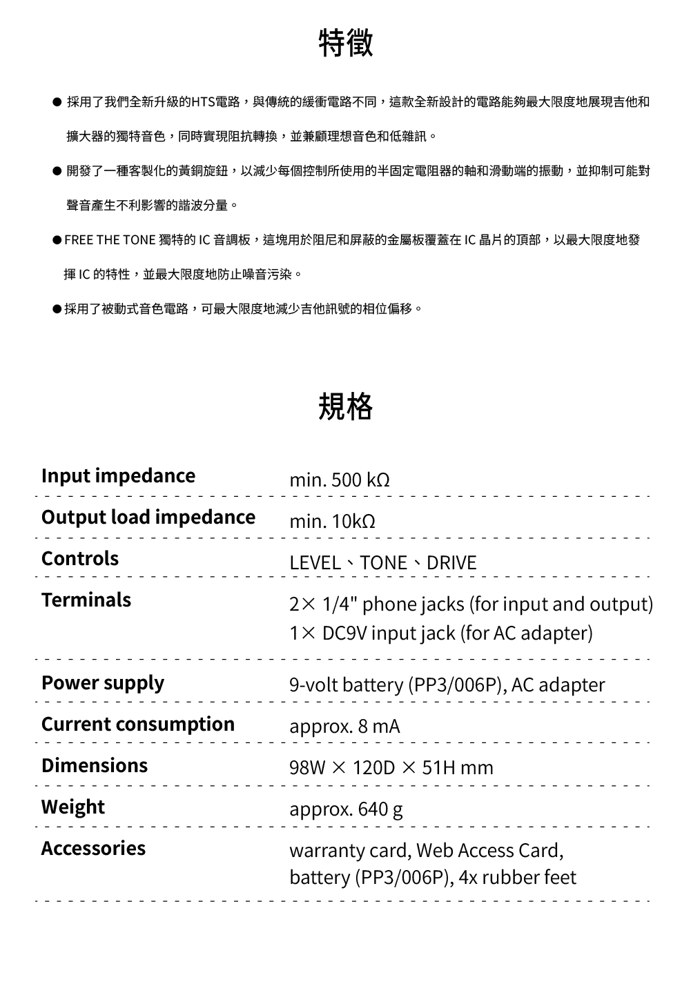 為了實現心中理想的音色概念,FREE THE TONE 以多年累積的專業經驗 與對聲音的敏銳感受為基礎,全面重新檢視並重構效果器中的每一個元件 與電路設計,最終誕生了 Integrated Series 系列。
