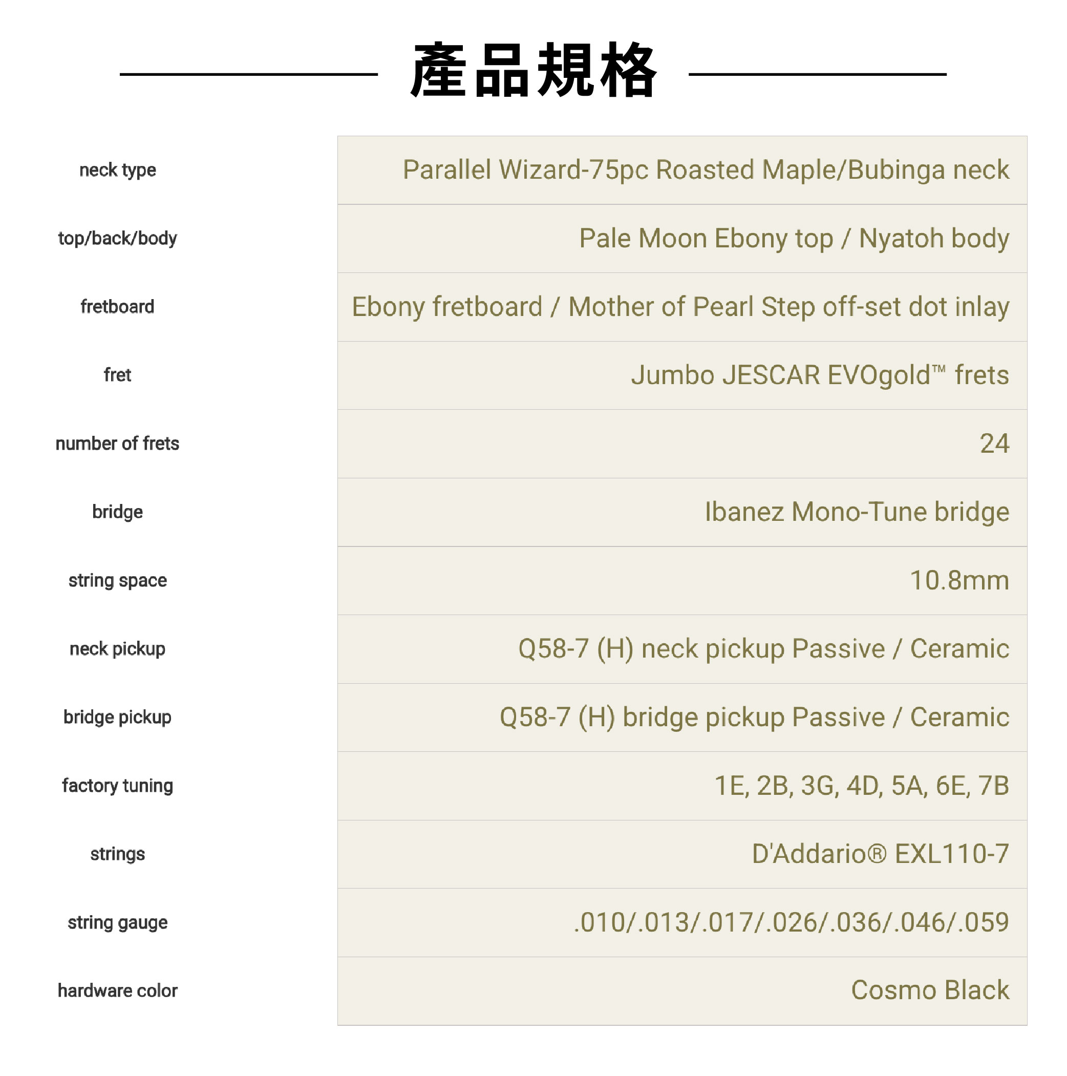 ● 琴頸厚度均勻,手感超舒服,適合高姿勢演奏。 ● 烏木指板聲音清晰明亮,彈起來反應快 ● 金色大品絲耐用又帥氣 ● 品絲有斜角設計,玩技巧更順手 ● 特別的黑檀木面板搭配尼亞托琴身,音色溫暖有層次 ● Q58雙線圈拾音器,聲音強而不雜,高頻溫柔不刺耳 ● 自鎖弦設計,換弦快又方便 ● Mono-Tune橋可調整弦高和音準,適合不同調音需求 ● 10段切換開關,隨心變換雙線圈和單線圈音色 ● NTF : Natural Flat