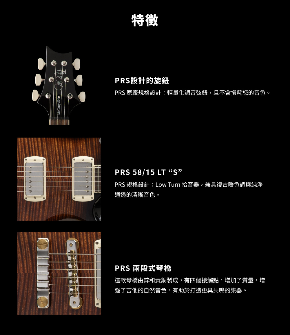 這款琴採用 24.594 英吋的弦長長度,這也是其型號名稱的由來。搭配稍微厚實的 Pattern Vintage 琴頸設計,不僅提供了舒適的握感,更增加了琴弦的張力與共鳴。PRS SE McCarty 594 是一款專為追求經典音色與穩定性能的樂手所設計的專業樂器。