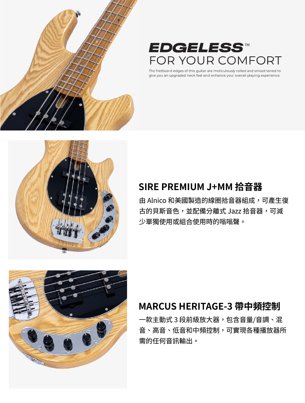 M3 拾音器可產生清晰且強大厚實的低音,提供表演時無可比擬的演奏性。